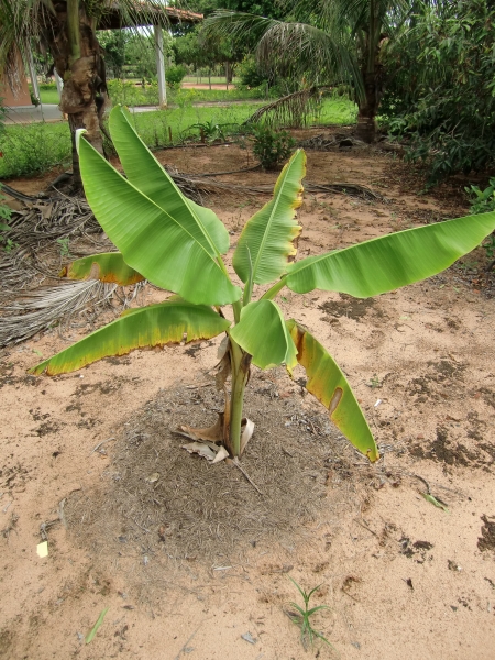 Da der Sandboden wegen Nährstoffmangel und der zu schnellen Aufheizung nicht sonderlich geeignet für Bananenanbau ist, habe ich einer der Pflanzen an den Teich im Dezember 2010 umgepflanzt, wo auch Musa 'Nanica' sehr gut gewachsen ist und der Boden wegen des höheren Grundwasserspiegels auch in der Trockenzeit feucht bleibt, und schon Ernten hervorgebracht hat. Inzwischen steht in Angatuba bei Colecionando Frutas ein riesiges Exemplar, in Brasilien gedeiht sie sehr gut.