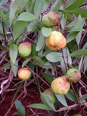 NOMENCLATURE AND IMPORTANCE: UVAIA-PEBA comes from the Tupi-guarani and means "sour fruit" and PEBA “creeping down”. Also called as Uvaia do cerrado or Rounded Field Pear.