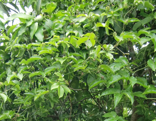 Passiflora edulis in unserem Garten im Dezember 2009.